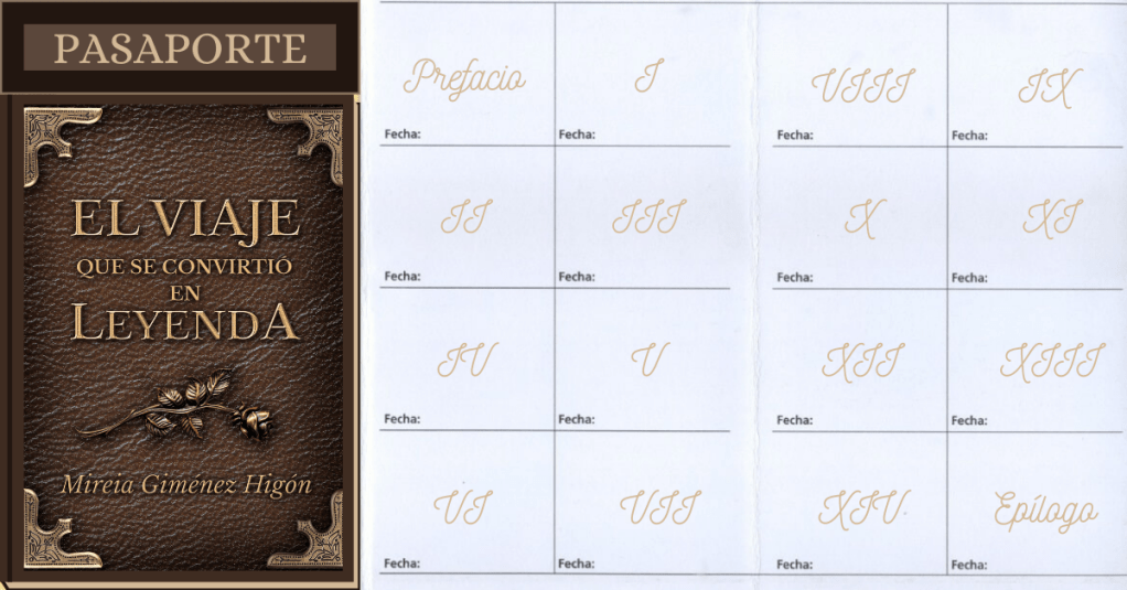 Estoy muy emocionada porque, durante el mes de octubre, se leerá El viaje que se convirtió en leyenda en el Club de lectura de Novela Histórica. Para ello he creado este pasaporte que veréis a continuación y que servirá para que los lectores recorran el camino sin perderse, disfrutando de cada etapa y leyenda y, así, disfrutar de un viaje literario inolvidable.