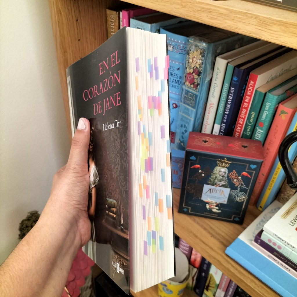 Como se puede ver en la imagen, ésta es una historia que he disfrutado por completo y también se puede ver que no hay casi marcadores rosa. ¿Qué significa ésto? Bueno, yo tengo un código de colores para encontrar de manera rápida aquello que más ha llamado mi atención. El rosa es para marcar todo lo relacionado con el romance y, aunque está muy presente en la novela, no es algo constante sino que tiene su justa medida.